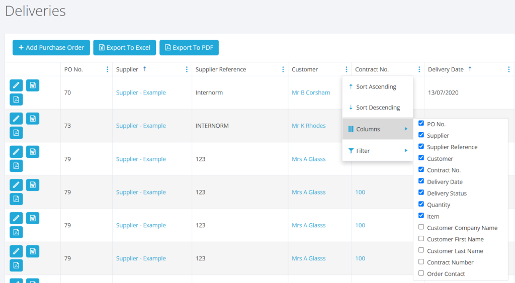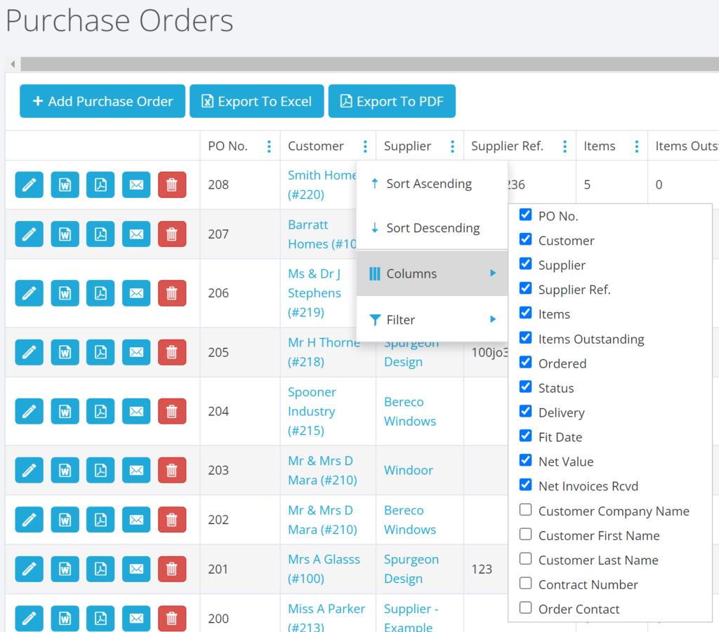 We now have a separate last name field on the column list when looking at the Job Costing/Purchase Orders/Delivery reports, which means you can now sort the client names either in ascending or descending order, which does not include the client prefix such as Mr or Dr.