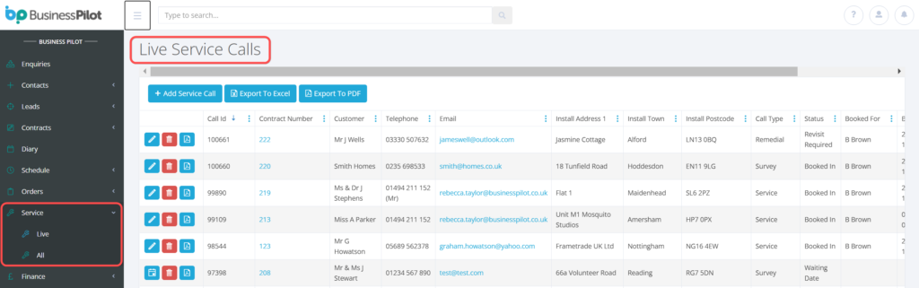 Previously the Service calls have all lived on one page. We have now split this into two areas, which means we now have ‘Live’ service calls and ‘All’ Service calls. Due to this the ‘Live’ Service calls page loads much quicker and allows you to keep track of those pending much easier and without having to filter out the completed calls.