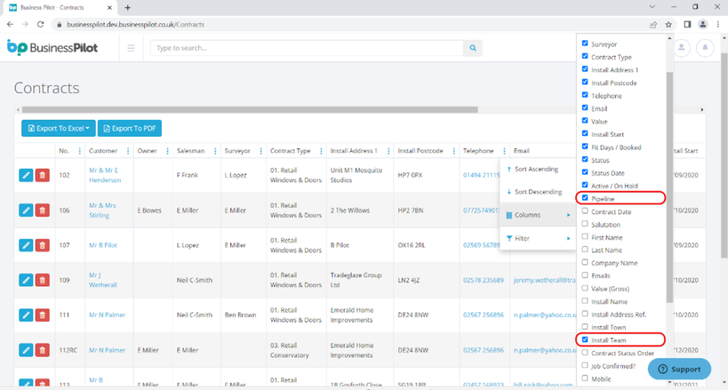 The second column which has been added is the ‘Pipeline’. With the multiple pipelines possible within Leads and Contract, this now enables you to filter to, identify a specific pipeline. This also corresponds with the status column to get the most accurate report needed.