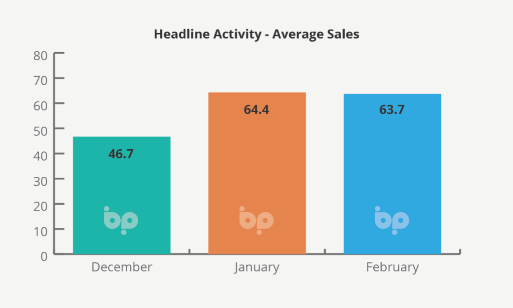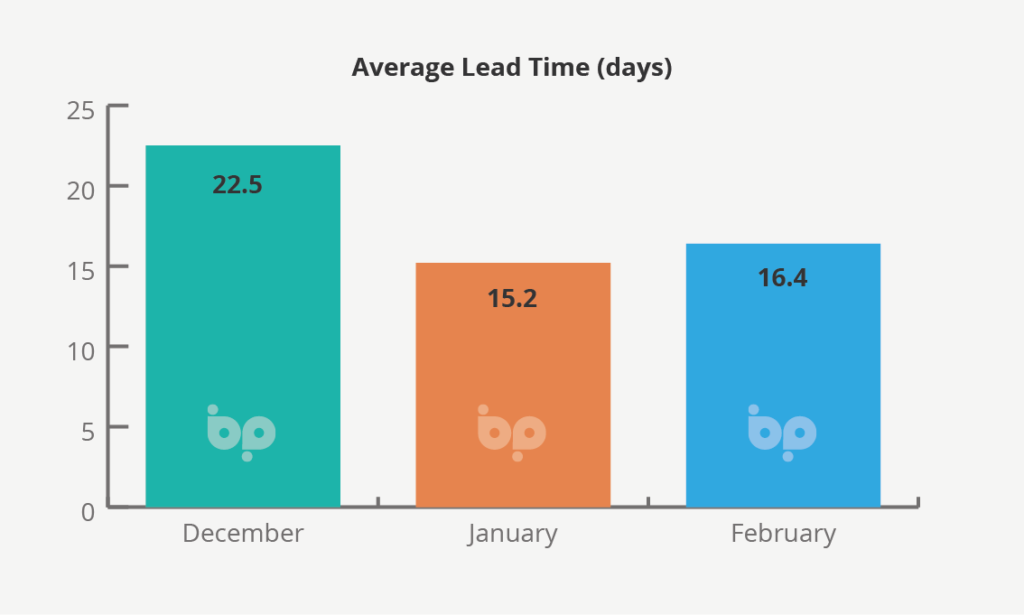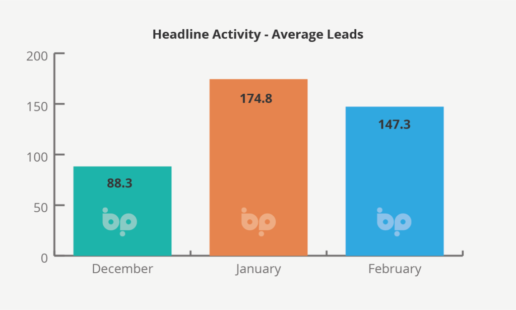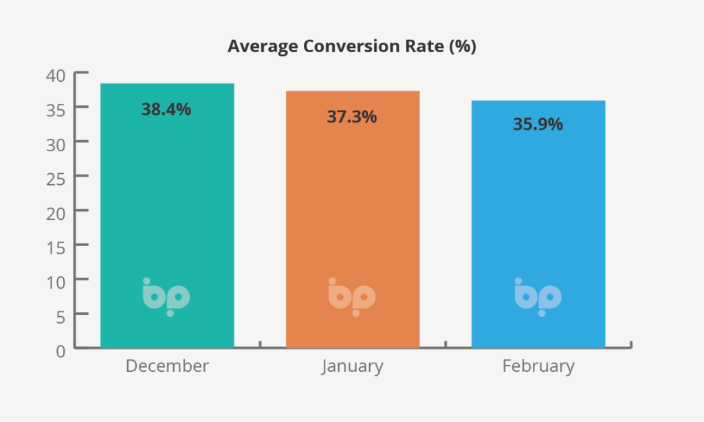 Average conversion rates, however, remained high across the three-month period including 38.4% in December. This remained high in January despite the spike in new leads at 37.3%, tailing off marginally in February to 35.9%.