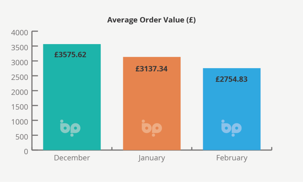 This headline figure, however, hides a 31% drop in sales of timber products January to February and 12% in aluminium. Sales of PVC-U products remained comparatively constant. This drop in sales of higher value products contributing to a 12% drop in average order values in the last month to £2,755.