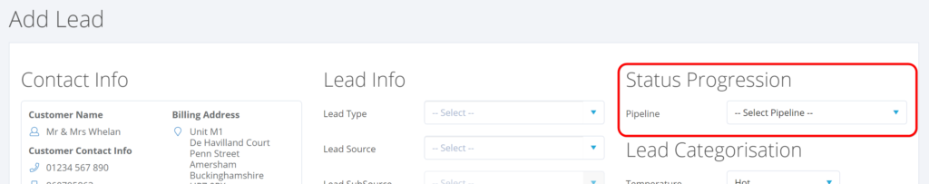 Rather than defaulting to the first pipeline on the list when creating a Lead or Contract, the field will now contain —-Please Choose Pipeline—-