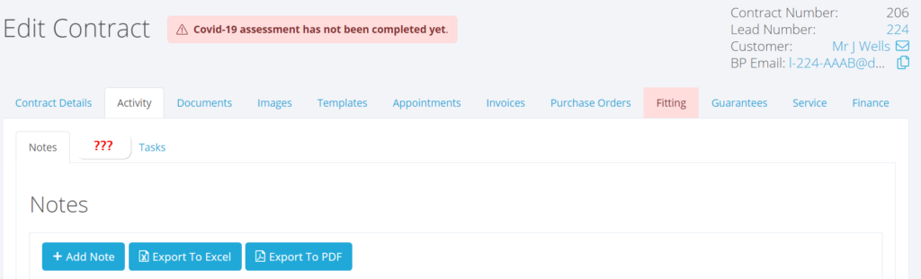 An additional thought was to make the ‘Activity’ tab idea work better therefore we have introduced sub-tabs so Activity would open with Notes immediately visible. You can then click along sub-tabs to Tasks & Emails. Where we get to combine those actions but still provide a single click to Notes and the across from Notes to Tasks.