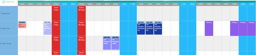 Installers holidays are booked through the Admin Menu, under Schedule Settings. Now when booking such holidays into the schedule board the holiday name will appear. This helps manage team holidays and see exactly what they were. Public holidays also now contain the holiday name so you know what days the business is closed and why.