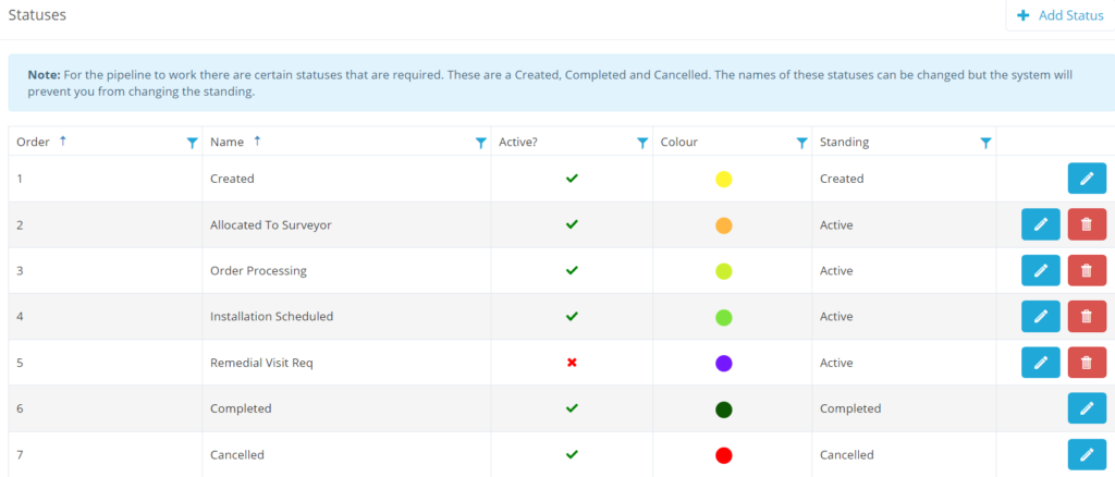 Statuses that have been changed to inactive in the Admin > Manage Pipelines area showed up when you selected ‘Change Pipeline’ and changed over to a new pipeline part-way through the customer journey. When the Statuses are marked inactive they will no longer appear in such dropdown.