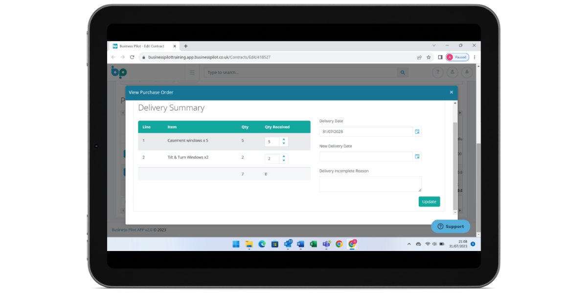 Give your warehouse team access to what is due in by running a simple report, powered by the purchase orders of each contract, or give them a log-in to the system so they can make live updates when things are missing from deliveries or to confirm delivery of items for each job.