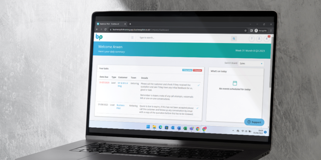 The Management Information and Reporting areas in Business Pilot help you to keep track of sales, turnover and margin, for the whole team and for individual users too. If you run a number of branches or a group of companies, our Group features helps you see them all in one place, to give you the best overview.