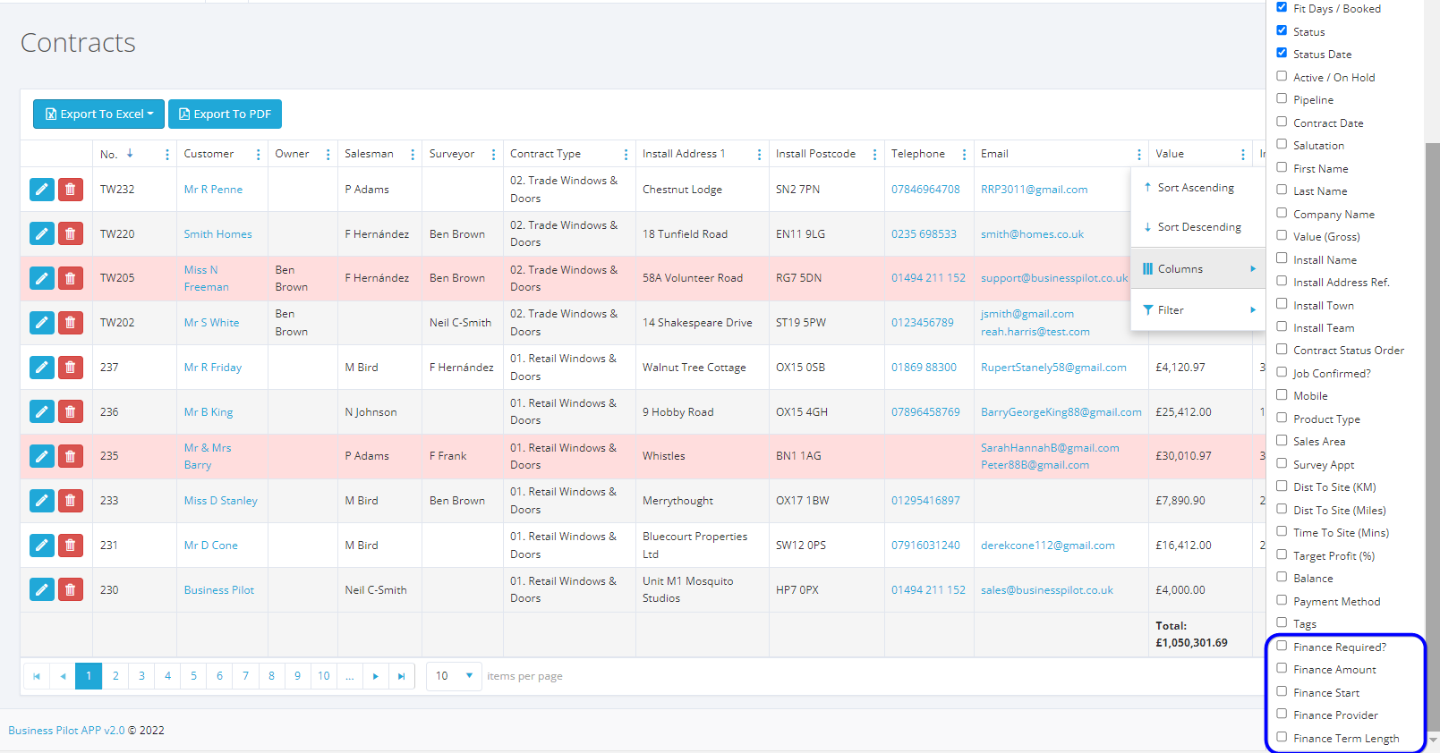 Recording information is one thing, but tracking and reporting on this specific information is what makes our Custom fields really useful. Whatever you set up as your custom fields, can be added to your grid view (of information e.g. contracts) and also filtered on, sorted by and of course exported.