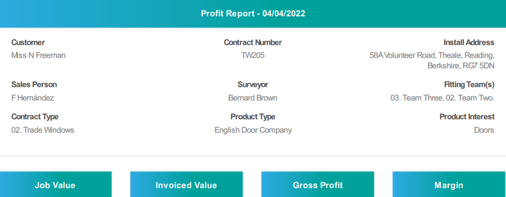 This report will give you a profit/performance statement for each job showing the total Gross Profit against the Invoiced Value and any Job Costs raised.