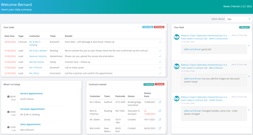 Reason For Update: Whether you hold an Office role, Sales, Operations or Survey and Service/ Remedial. We now have a dashboard specifically designed for you. If you hold multiple roles you can switch between those relevant to you so that you have the most important information available at a glance at all times!