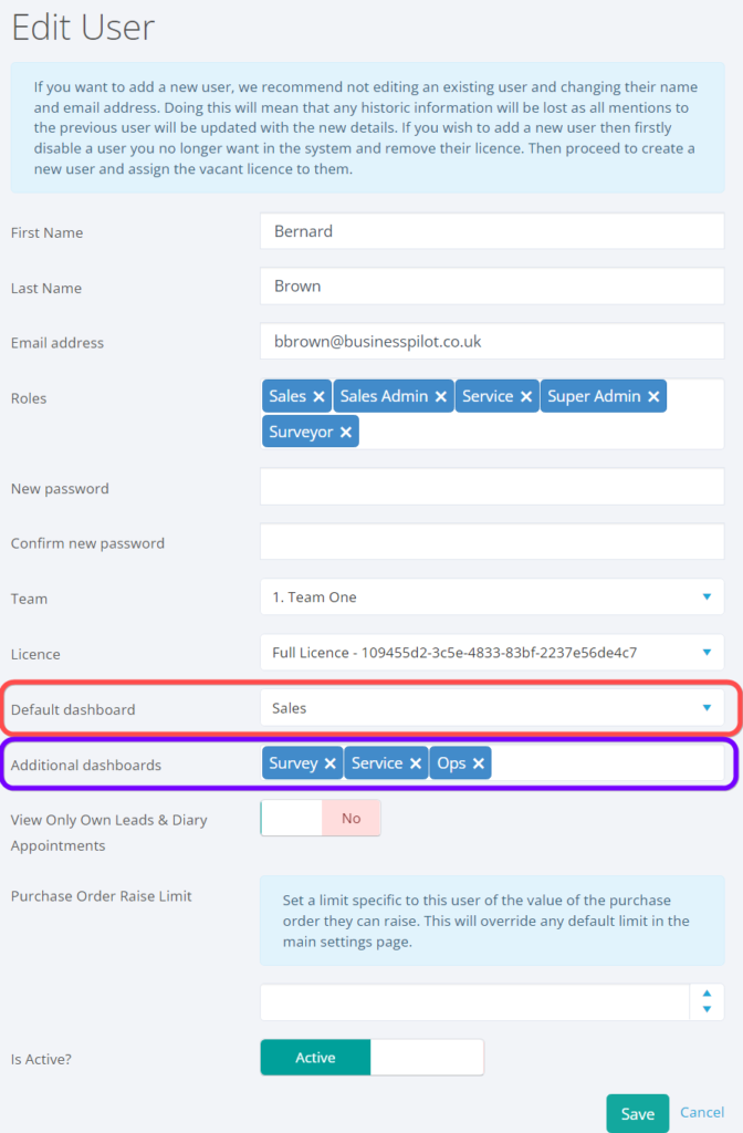 If you are an Admin user, please visit the main menu, Admin and Manage Users. Click the edit icon beside the user’s record and select the default dashboard relevant to their role. If they hold more roles than one, you can select additional dashboards as required. Once complete, click ‘Save’.