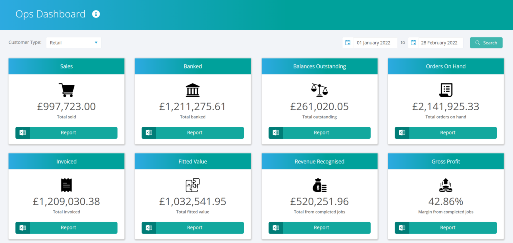 Revenue Recognised on the Ops Dashboard, we’ve removed ‘Costs’. This figure is driven from the Completed Contract Report (which in turn is using the revenue recognition date).