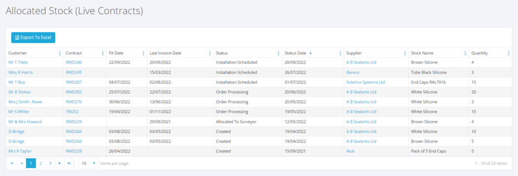 This enables you to much more easily see where the stock has been allocated for checking and auditing purposes. The units are aggregated too so multiples of the same items are collated to give a single customer line. We have also added the Customer Name as well as the Contract Number.
