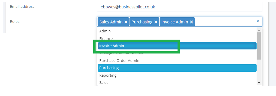 Please be aware this may mean that users within your business may no longer be able to action Invoices who could previously. They will need the role adding via the ‘Admin-Users’ area.