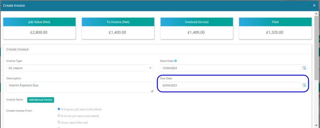 We have also introduced an option for Due Dates on Invoices for those businesses/customers who are working on payment terms. You can now set the due date of an invoice when raised within the individual invoice as well as set global terms within the ‘Admin – Company Settings’ or via the Contact record for a specific customer.