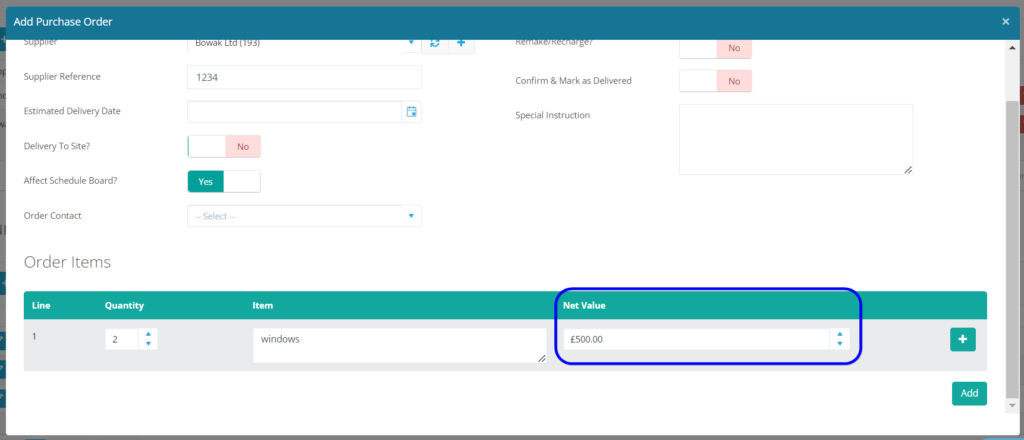 When adding a provisional supplier, you can now add a initial Purchase Order Net Value. This is optional but you will be prompted to add a Provisional Value when adding the Provisional Supplier. This will enable you to enter your anticipated products costs in from outset.