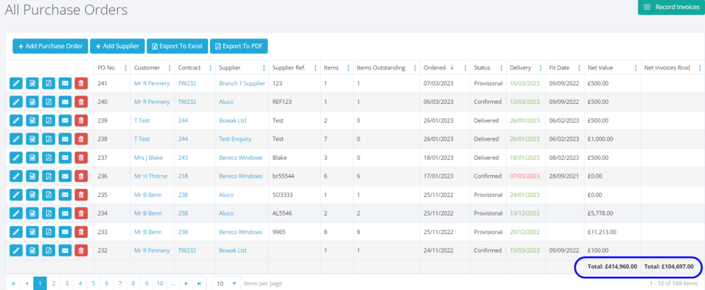 Within the All and Live Purchase Order grid view, we have now added the totals at the bottom of the columns for Net Value and Net Invoices Received for better tracking and reporting.