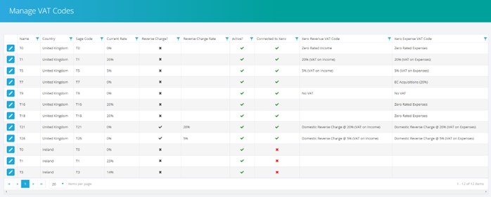 Here you can see all VAT codes in BP listed along with their rates and also then whether they are linked to ones in Xero. Note that the T21 and T26 codes weren’t linked initially. This is because the Xero system we used here didn’t have domestic reverse charging enabled. To enable them in Xero please visit here for details. You can then always go back to step 3 and rerun the sync so that the codes would now look like: