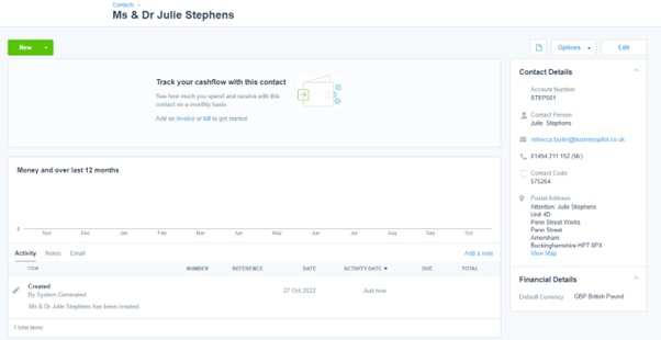 You can then go over to your Xero and find the details of the contact and see that it is now in that system.