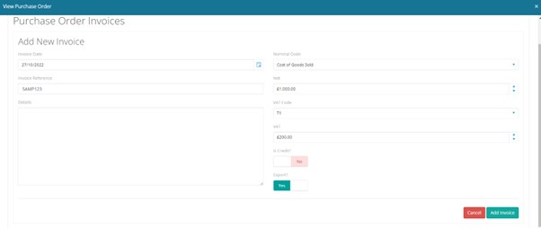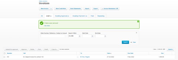 - Submitted – the invoice still must be approved but the values in the invoice are live in relation to customer accounts and ledgers