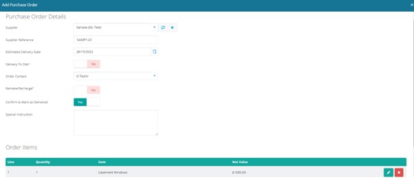 Lets take our contract where we have added an example invoice and firstly create a purchase order: