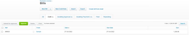 Then click Add Invoice and head over to Xero and look under Business -> Bills to pay: