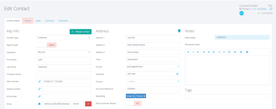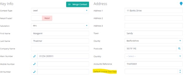 As mentioned in the setup above the contacts are sync’d between system based on the Account Number/Reference.